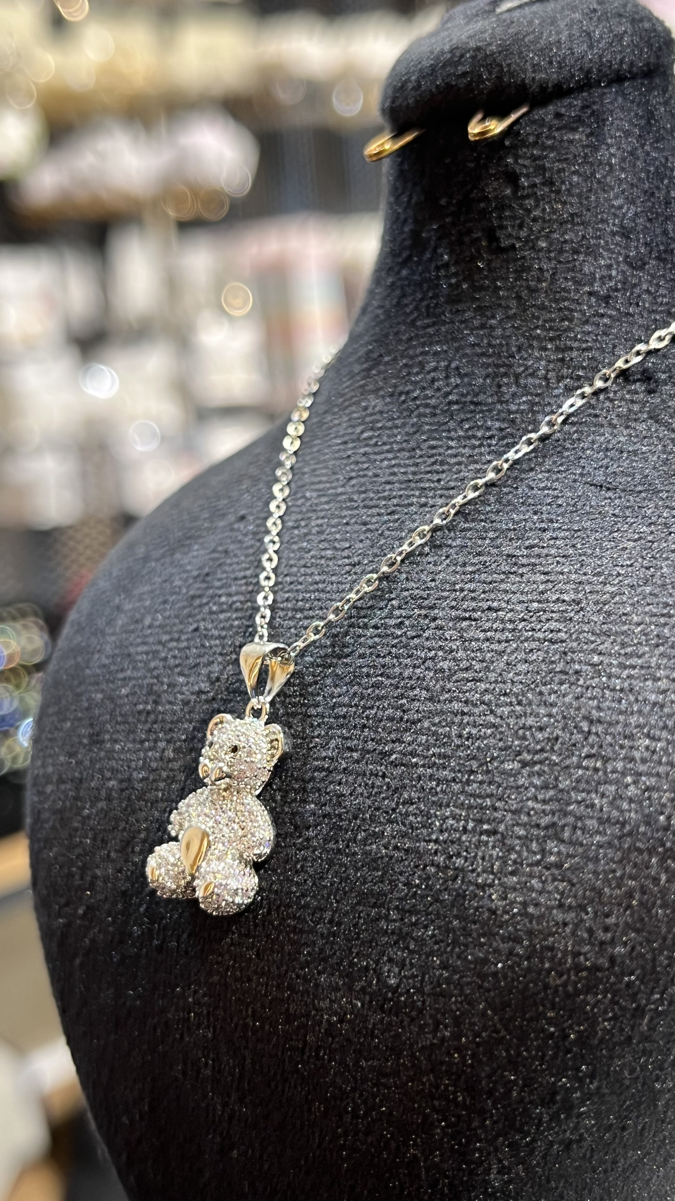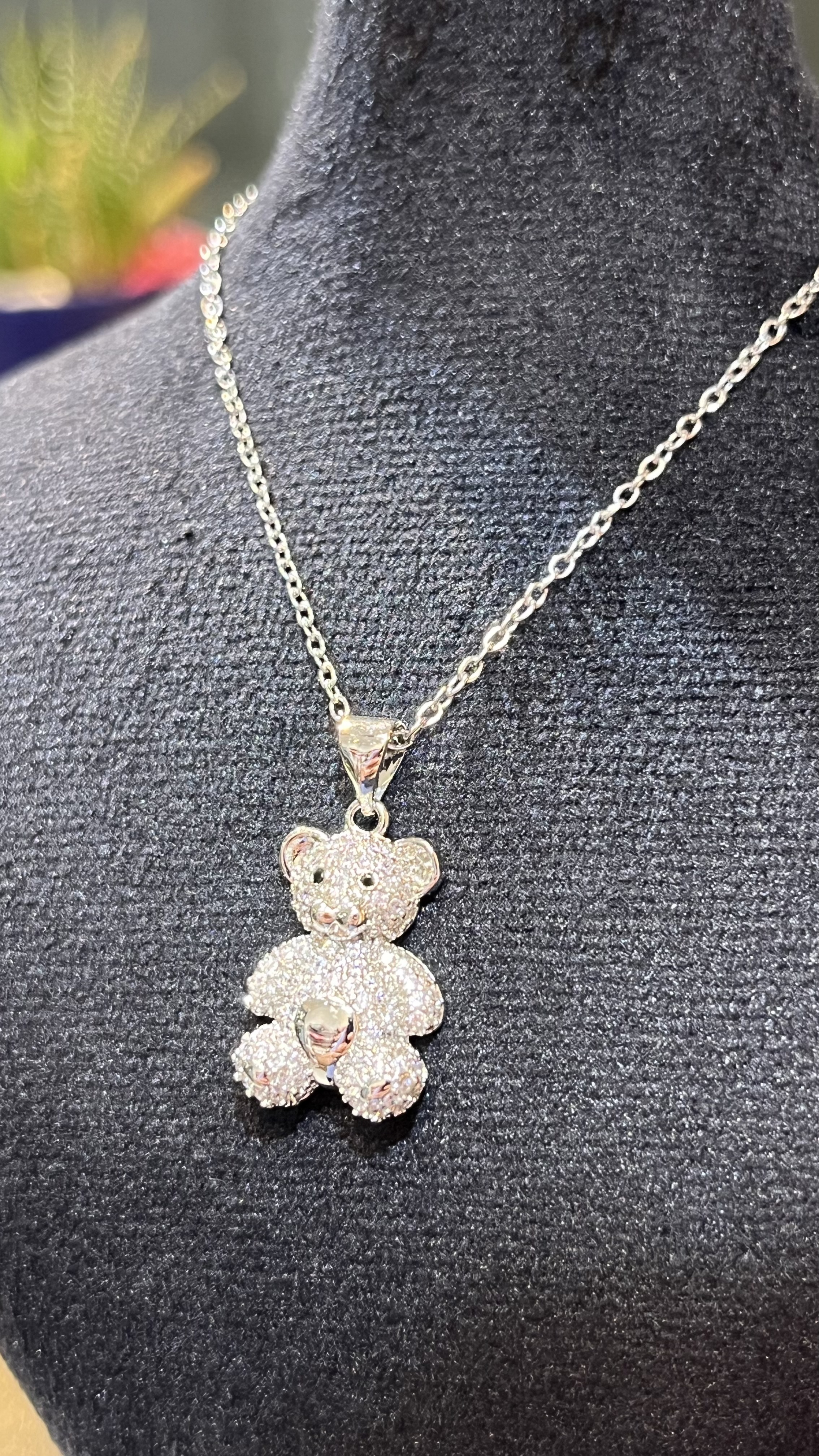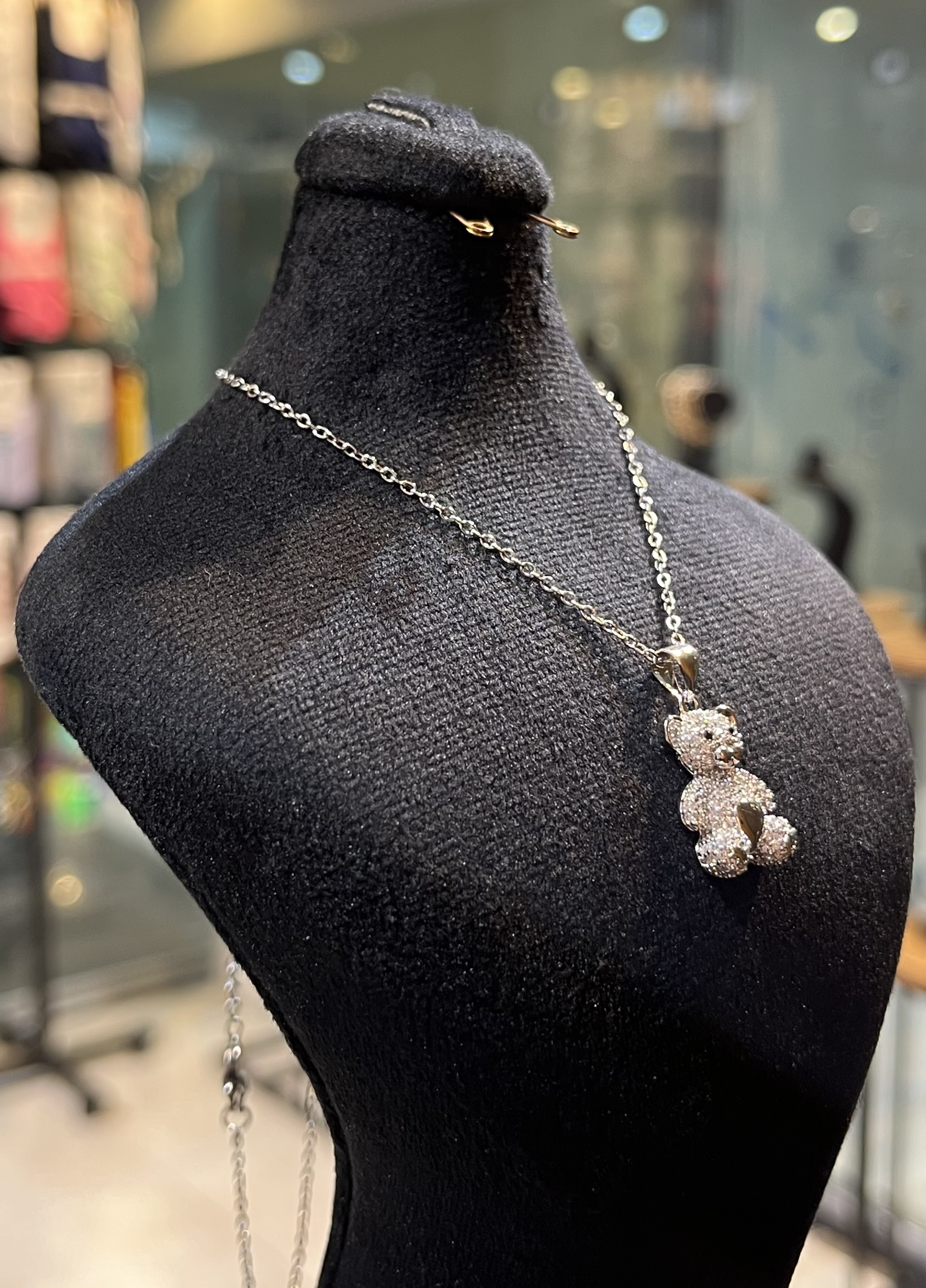 گردنبند لاکچری نقره ای شاین طرح خرس